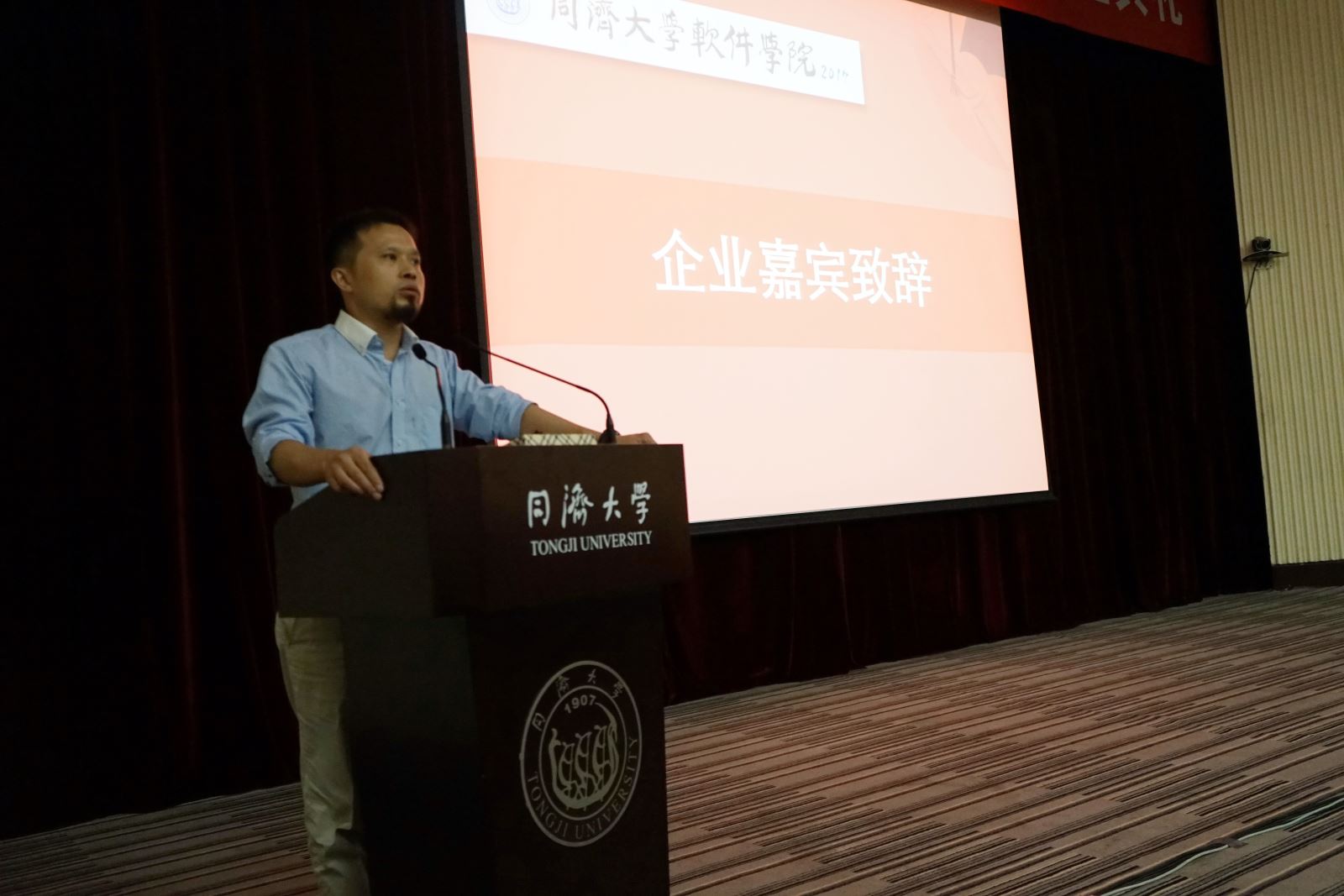 陈青山先生代表用人单位致辞。他介绍了合合信息的企业发展历程,用自己的切身经历对我院培养的毕业生从软素质到专业技能给予了高度的评价和肯定,并衷心祝福毕业生事业有成。