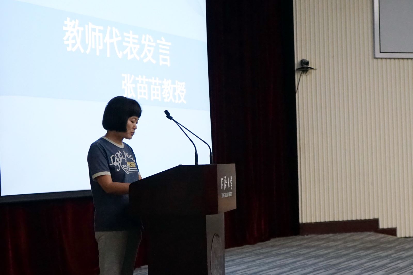 教师代表张苗苗教授对毕业生送上了祝福和嘱托。张教授和大家一起回忆了四年来同学们畅游知识海洋的一幕幕场景,鼓励毕业生们终身学习、砥砺前行,并殷切的希望大家以勇气和责任继续追寻和守护梦想。