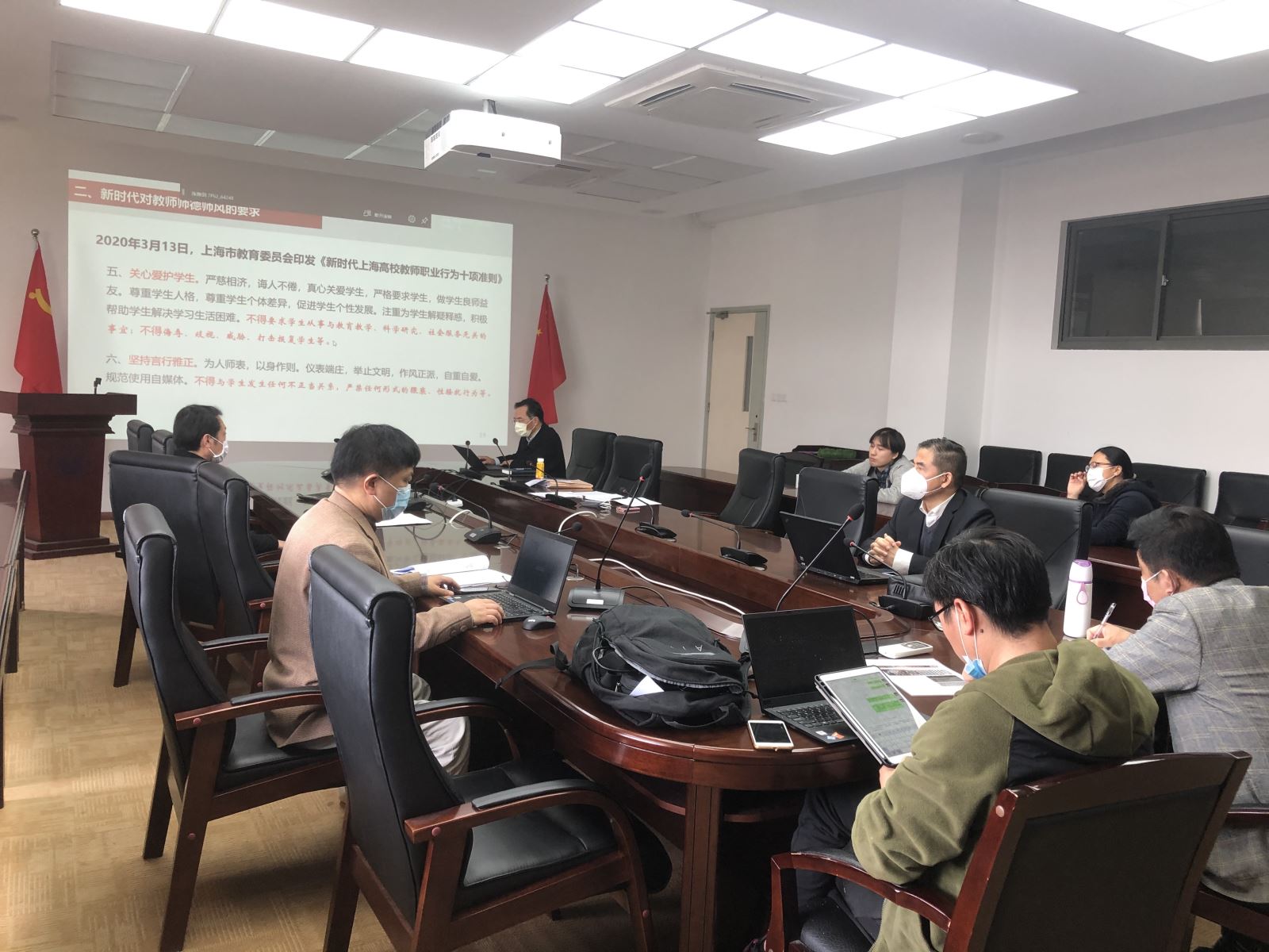 宋书记带领大家学习了习近平总书记关于高校立德树人的系列论述,结合新时代对教师师德师风的要求,解读了《新时代上海高校教师职业行为十项准则》,分析了学院师德师风存在的问题,提出了提升我院师德师风的建议,并强调师德师风建设是落实立德树人根本任务的关键。