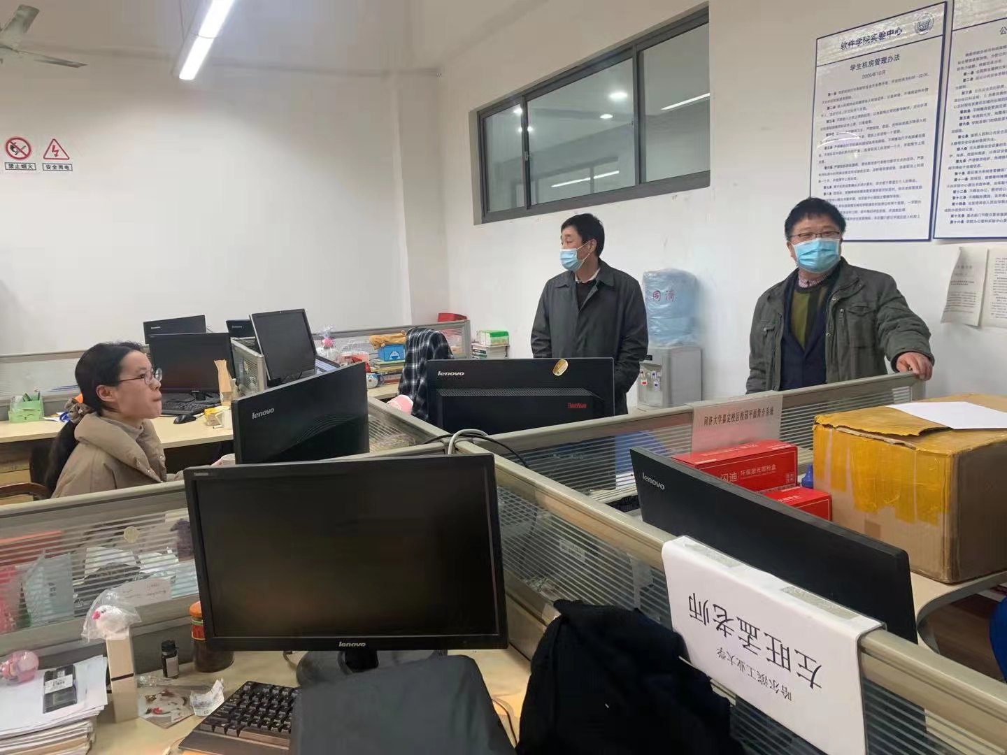 2021年1月28日下午,学校副校长黄翔峰来我院检查指导安全工作。软件学院党委书记宋庆国、院长赵生捷等党政领导陪同检查。