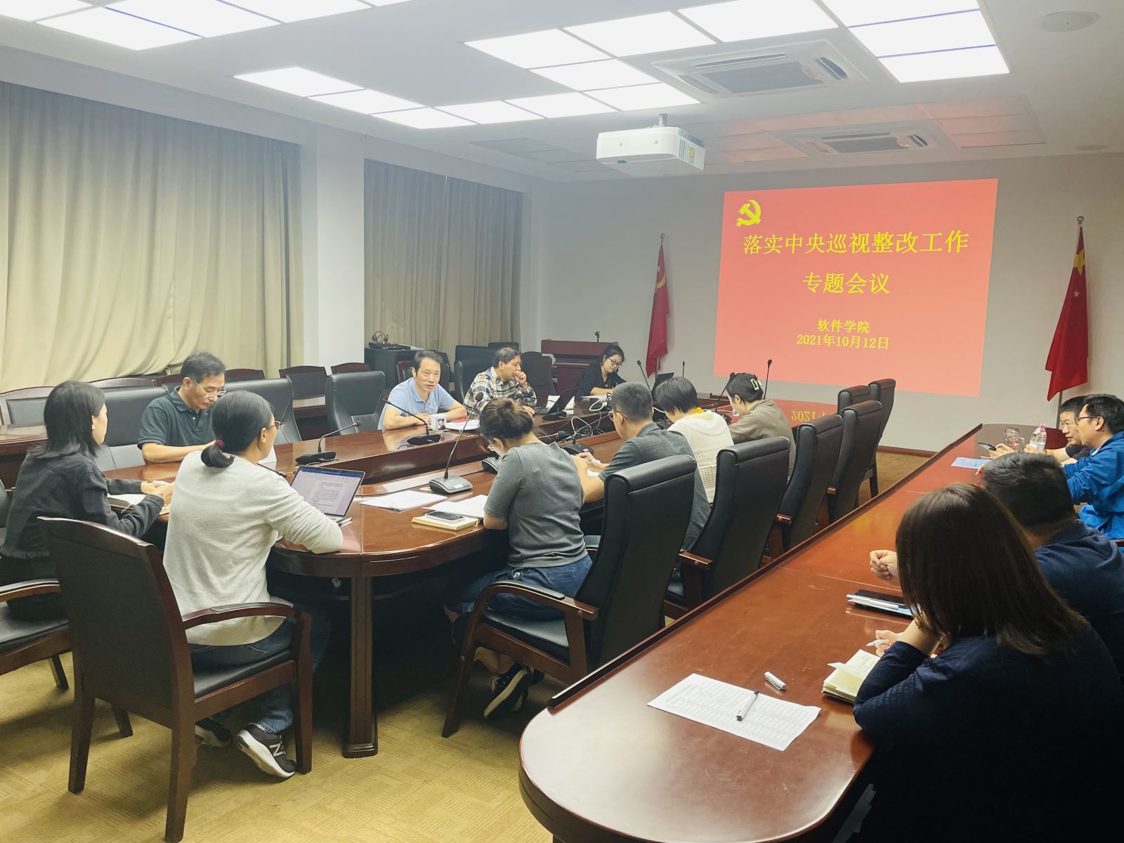 2021年10月12日上午,软件学院在嘉定校区济事楼417会议室召开学院党委落实中央巡视整改工会专题会,学院巡视整改领导工作小组全体成员、各部门负责人、全体党支部书记参加了会议。会议由巡视整改工作领导小组组长、学院党委书记宋庆国同志主持。