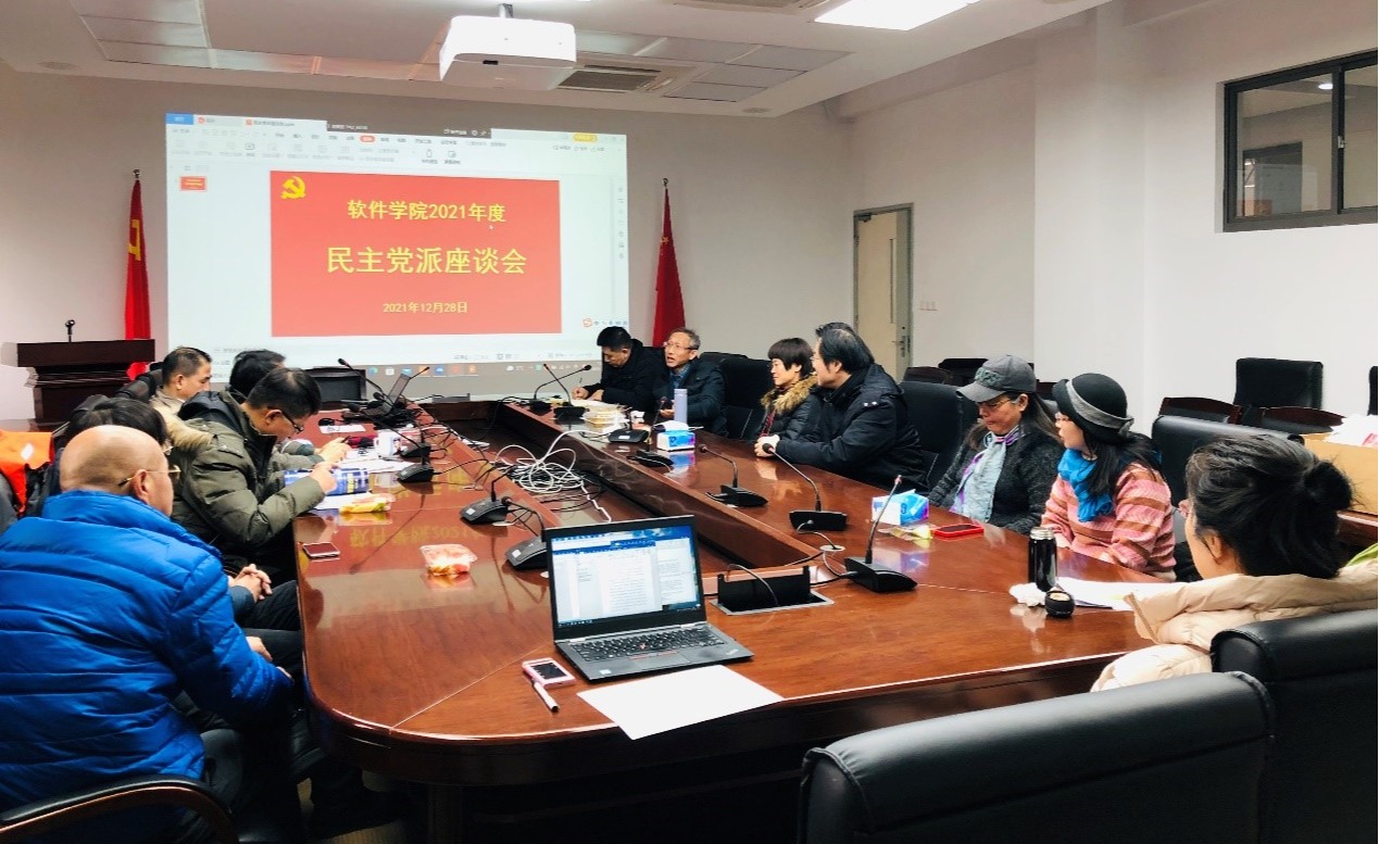 2021年12月28日中午,软件学院在济事楼417会议室召开民主党派座谈会,学院全体民主党派及无党派人士参加座谈。座谈会由分管统战工作的党委委员杜庆峰教授主持,学院党委书记宋庆国同志出席座谈会。